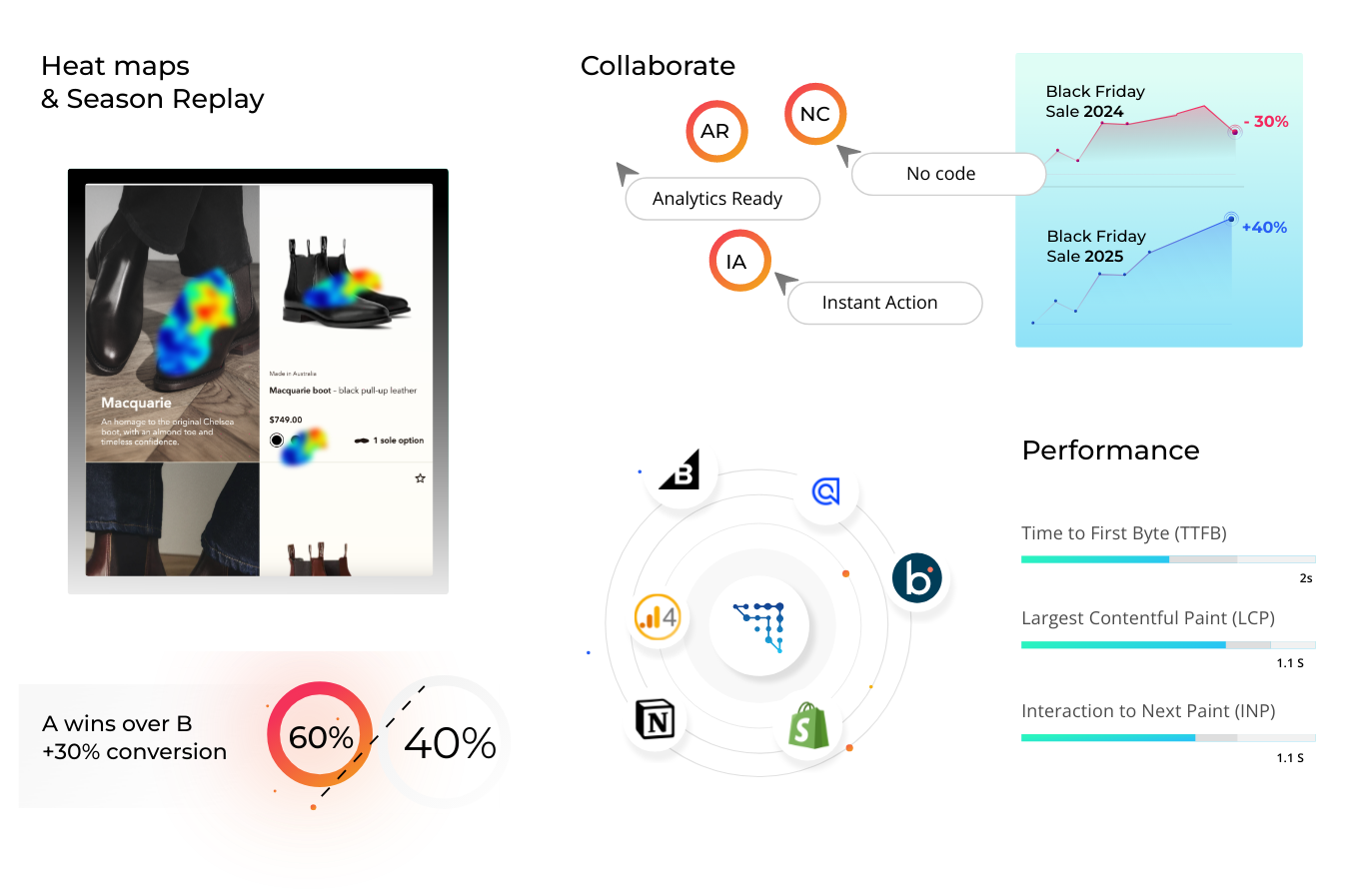 The AI-native DXP + CRO workspace that gives enterprise commerce teams the clarity to prioritize high-impact growth opportunities – and the speed to activate them instantly.